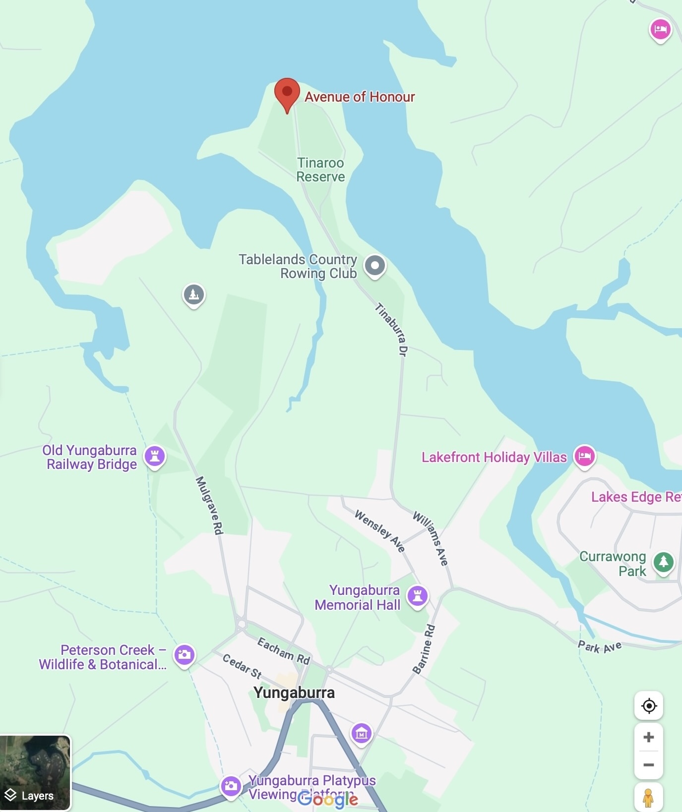The rowing shed is on the right hand side of Tinaburra Drive as you head away from Yungaburra towards the Avenue of Honour.