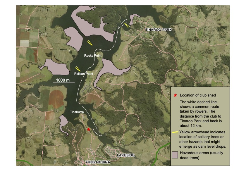 - Rowers must follow the above indicated direction of travel, especially in the inlet close to the shed, being mindful of other water users.
